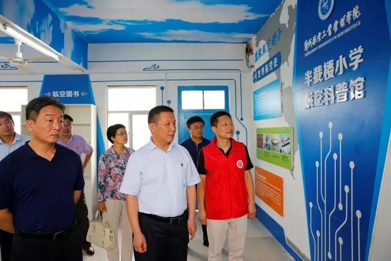 7月11日,河南省委宣傳部常務(wù)副部長蘇長青、副部長張曼如、省文明辦專職副主任王飛等同志帶領(lǐng)部機(jī)關(guān)有關(guān)人員,與鄭州航空管理學(xué)院有關(guān)領(lǐng)導(dǎo)和志愿者師生一行,分別到省委宣傳部幫扶貧困村周口市西華縣半截樓村和漯河市舞陽縣余莊村,為省文明辦、鄭州航院援建的航空科普館和鄭州航院志愿服務(wù)基地舉行揭牌儀式。